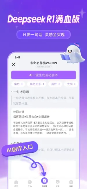 「DeepSeek R1满血版」与「AI创作agent」联手打造的互动剧本平台,只需一句话,即可生成专属于你的剧本世界