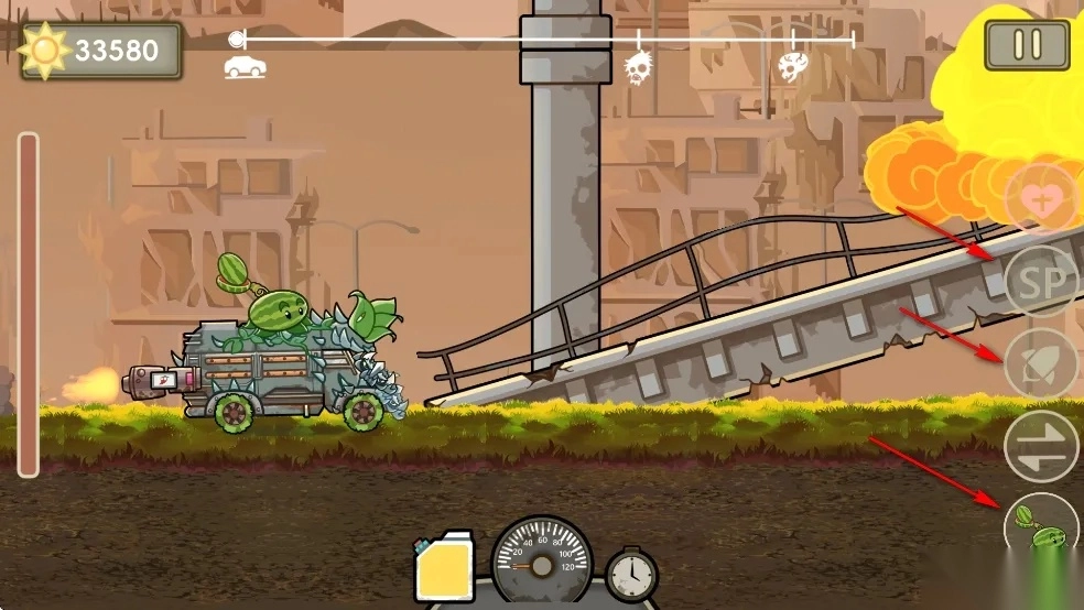 2. 可以驾驶装载着植物的汽车在僵尸遍布的道路上飞速行驶,撞飞僵尸的同时还能借助植物发起攻击。