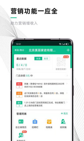 熊猫系统是北京小熊美家科技有限公司研发的商家管理软件,是专门面向家政公司的SaaS管理工具。该系统以互联网技术为依托,以整合家政资源为核心特色,致力于为家政公司提供多维度的支持,推动家政行业实现互联网+转型。家政公司借助它能够不受时间地点限制地在线管理客户,录入客户跟进情况与资料信息,从而提升客户管理的效能。此外,系统具备添加合同以及查看即将到期合同等功能,方便家政老师随时签约,有效提高签单的效率。