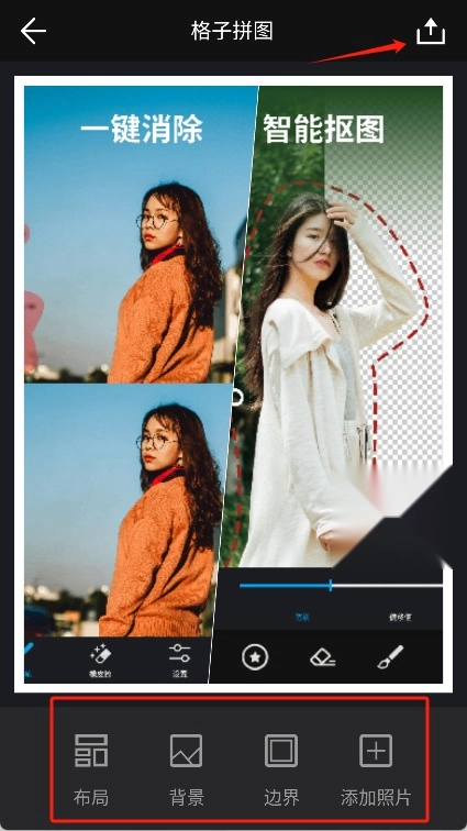 选定一个布局后拼图便会自动生成,你能够借助底部的各项功能对拼图进行调整,待效果满意后点击保存即可。