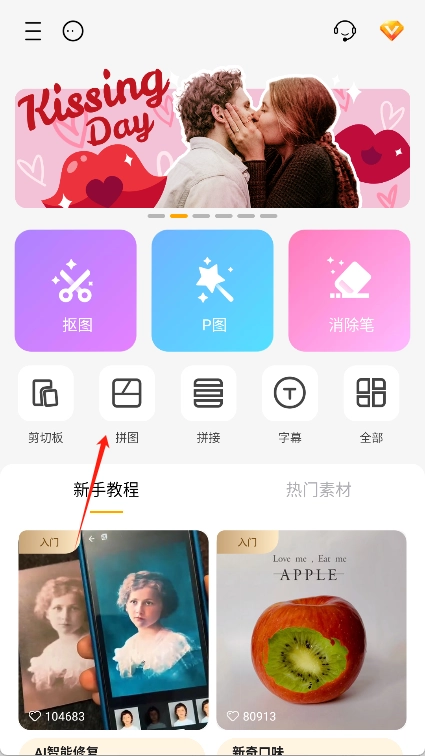 2、拼图功能:进入首页后,找到并点击“拼图”功能入口,接着挑选需要用于拼图的照片,系统会呈现多种不同的布局格式供你选择;