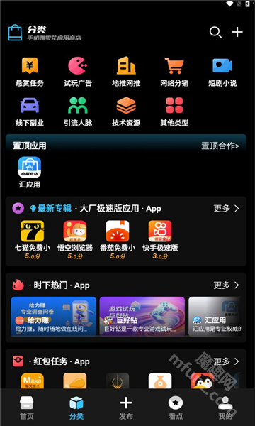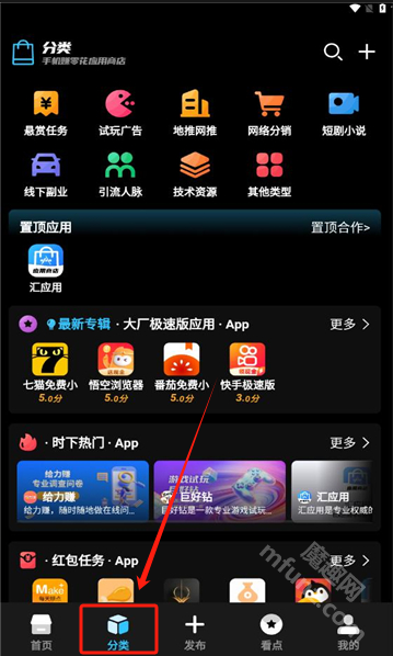 3、点击页面底部的“分类”选项,就能浏览到各类优质应用。