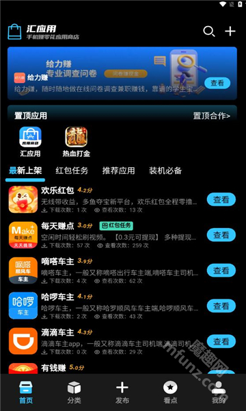 首先在魔趣网(m.mfunz.com)下载并安装汇应用商店。打开进入首页后,就能看到各类热门推荐的应用。