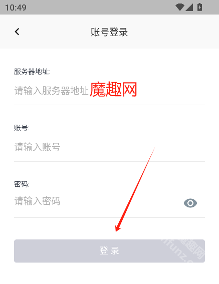 2、填写服务器地址,输入账号与密码,接着点击“登录”按钮。