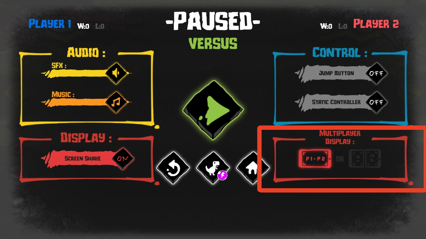 1、目前该游戏仅提供好友同屏对战模式,第一步请点击首页的【VERSUS】按钮。