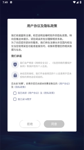 1、完成安装后打开软件,首次启动时请点击同意相关服务协议。