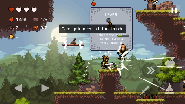 4、右侧的苹果键能够发动远程攻击,不过会消耗苹果,苹果可以通过拾取来补充。