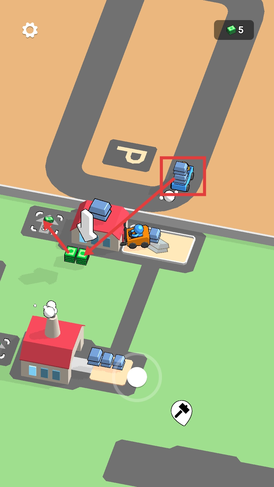 3、蓝色卡车完成运货任务后可获取金币,使用这些金币对建筑进行升级,能够提高货物处理能力与收益效率。