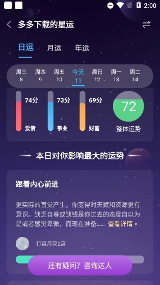 2星座问答问爱情,问运势,问财富,问事业,只要你想问的,达人都能解答,让你问的开心,问的放心,还有达人追问功能,让你从此不再疑惑!