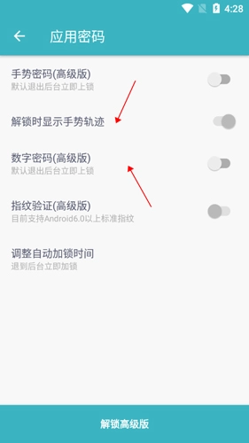 - 指纹:指纹手势密码隐私保护。