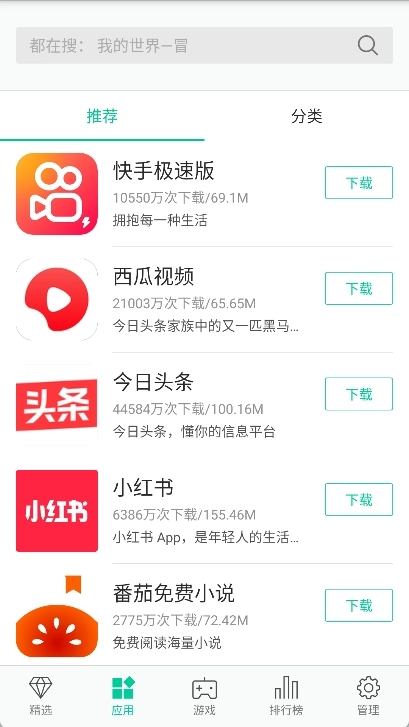 4、应用分类:把应用依据不同类别进行排序,像游戏、工具、社交这类,便于用户查找。