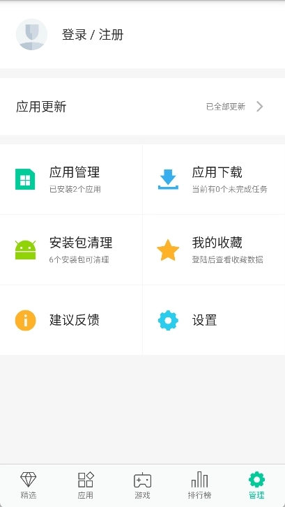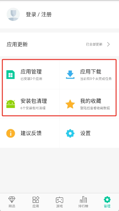 7、应用管理:在“管理”页面,你能够对手机里已安装的应用程序与游戏进行管理,像更新、卸载这类操作都可以在这里完成。