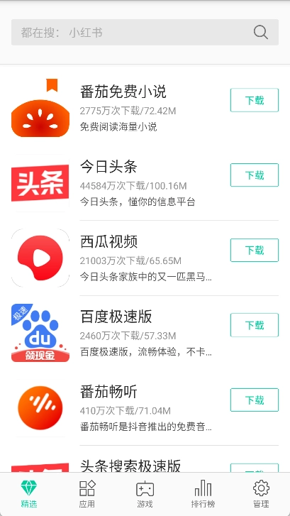 5、搜索功能:支持通过关键词查找想要的应用程序与游戏,对应的搜索结果会呈现出相关的应用列表。