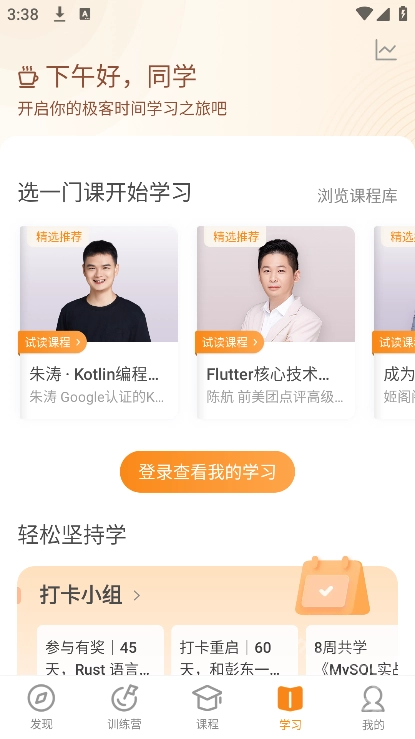 1. 新人专享福利:首次登录平台即可领取7天体验卡;体验期结束后,用户可通过购买超级会员继续免费学习课程,也能选择使用极客币单独购买所需课程。