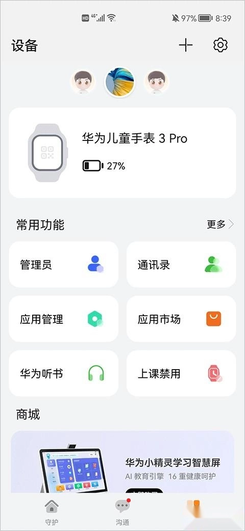 管理多台儿童手表时,可在智能关怀应用里点击设备,通过点击页面上方的儿童手表头像实现切换。该应用最多能绑定10台儿童手表,且仅支持绑定华为、荣耀品牌的儿童手表。