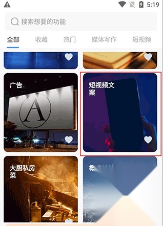 2、然后找到【短视频文案】功能并点击进入。