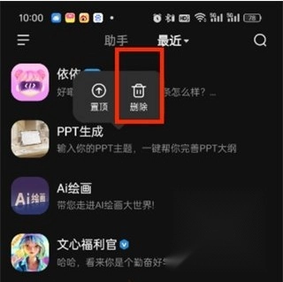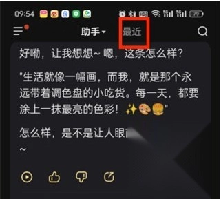 1、首先前往魔趣网下载并安装文小言应用。打开应用进入首页后,我们可以直接与它进行对话,此时点击页面上方的【最近】选项即可。