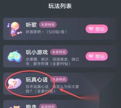 2、进入房间玩法界面,选择【玩真心话】点击想玩
