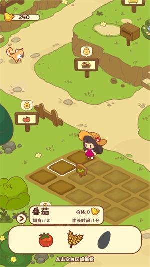 完成新手指引后,你就能自由行动了,点击土地就能种植各类作物。