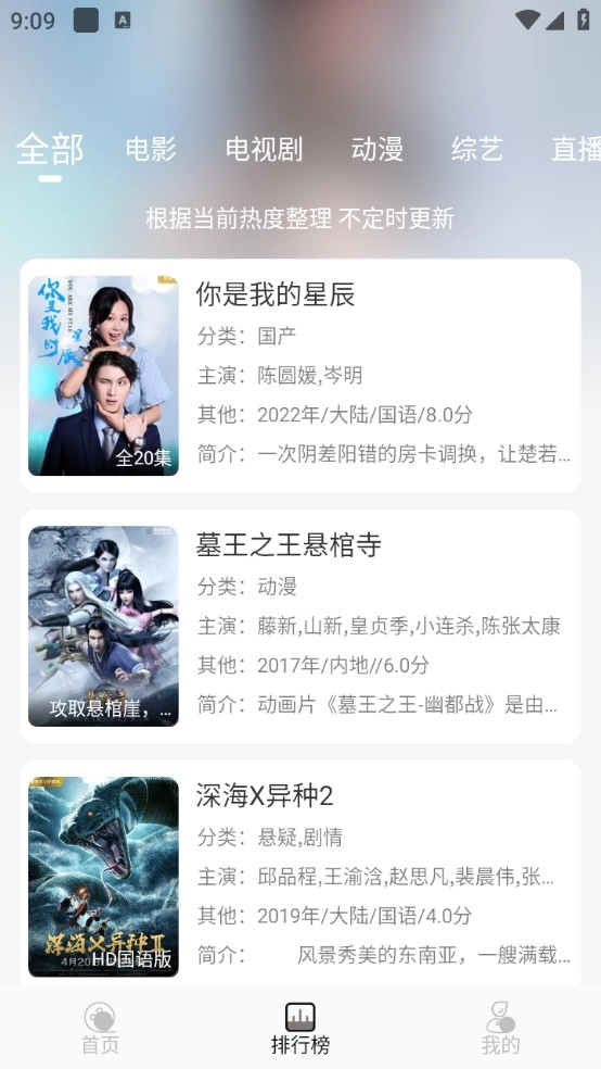 3、排行榜页面是根据当下热度进行排列。