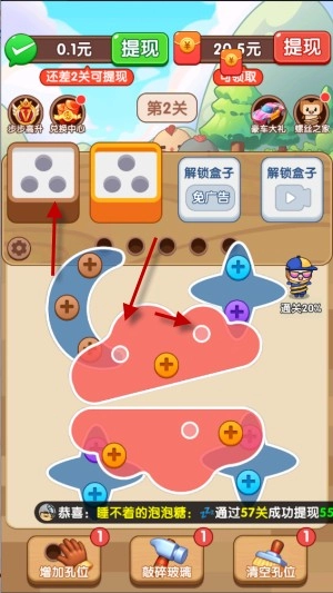 在游戏里集齐三个螺丝后,就可以触发消除效果,同时会出现新的工具盒。