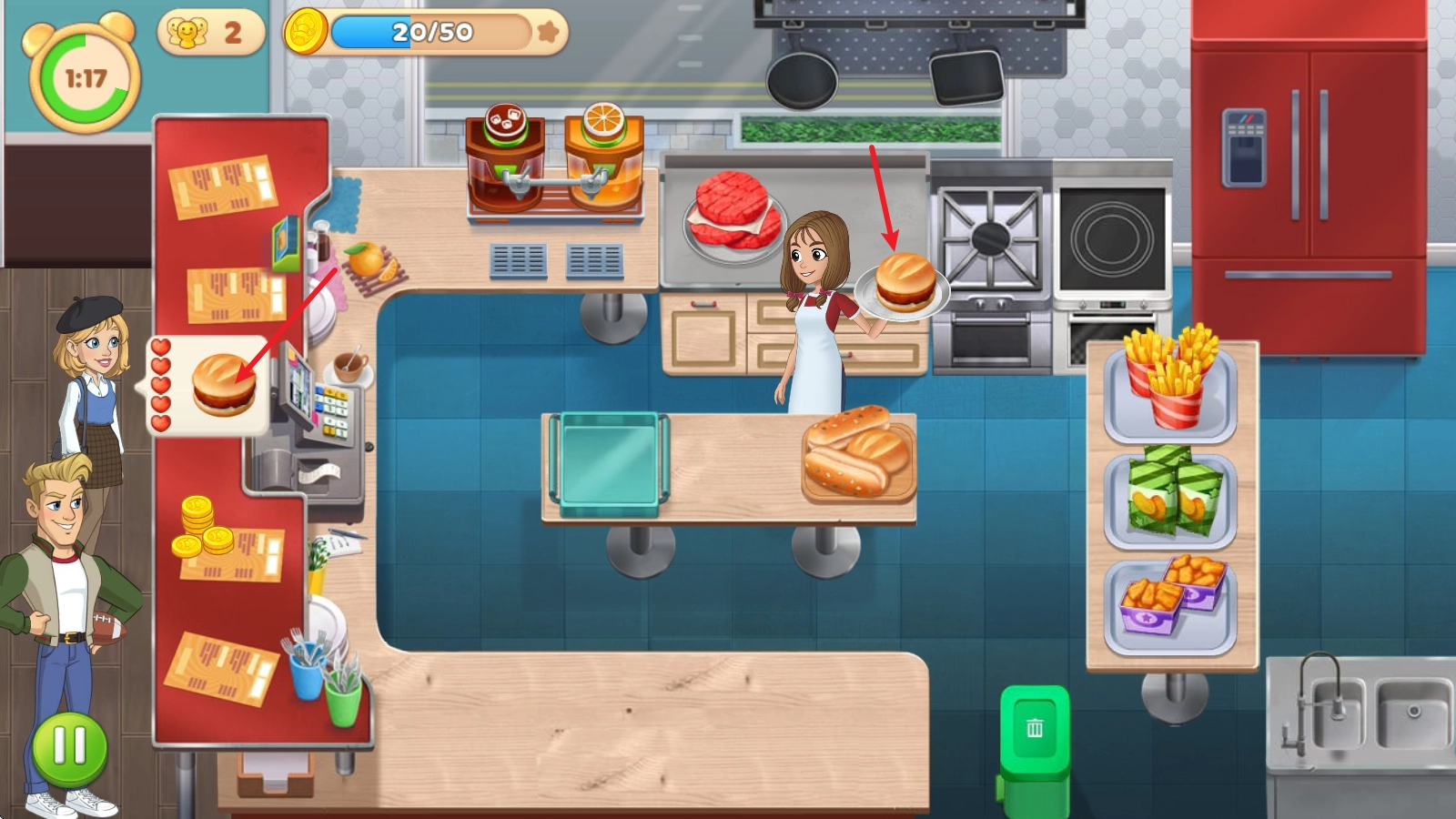 制作完成后点击就能拿到,接着点击客人的菜单提交,就能获得相应奖励。
