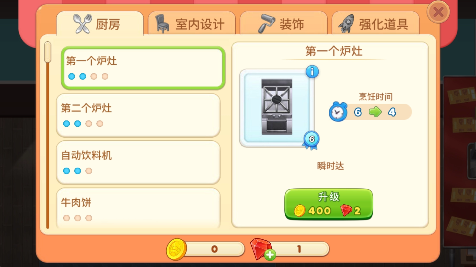 烹饪日记游戏怎么升级厨具