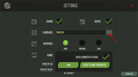 2、然后点击language选项的箭头切换语言。
