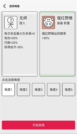 4、选好难度后就可以开始闯关爬塔了。