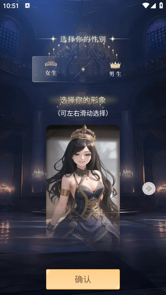 2、选择自己的形象,左右滑动可以切换。