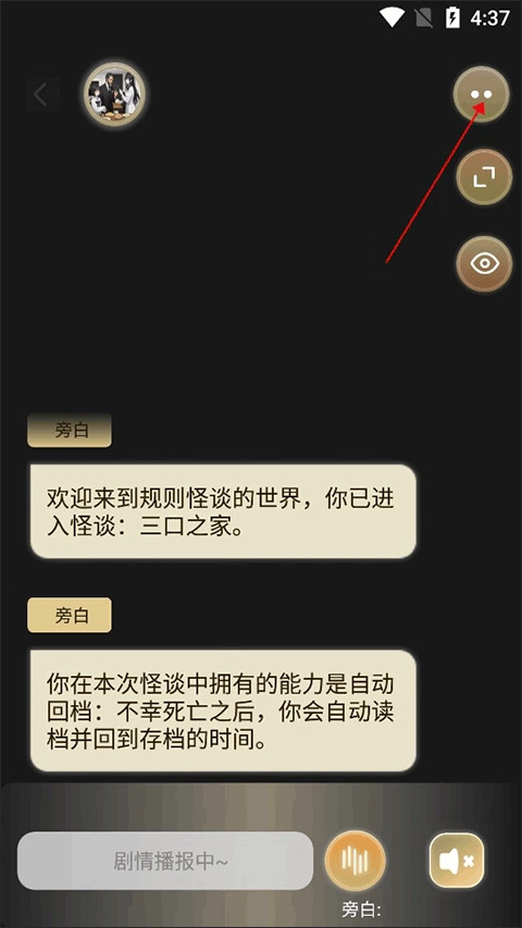 2、进入到小说互动界面,点击右上角的2点图标。