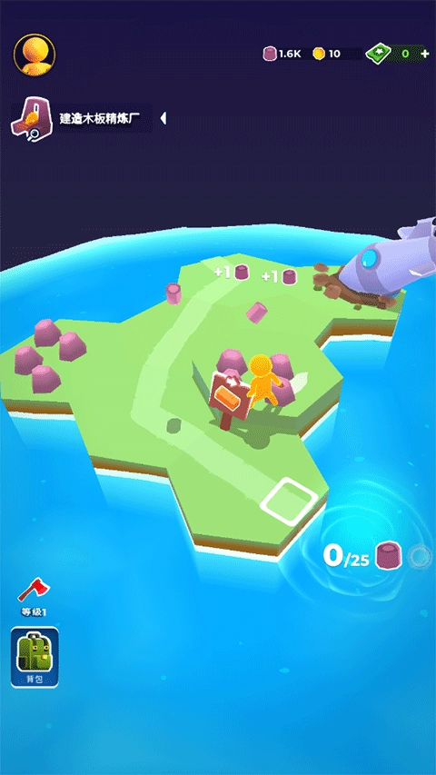 2、把收集到的资源放置在空着的地方,就能生成一片新的土地,如此一来就有更多木材可供砍伐了。
