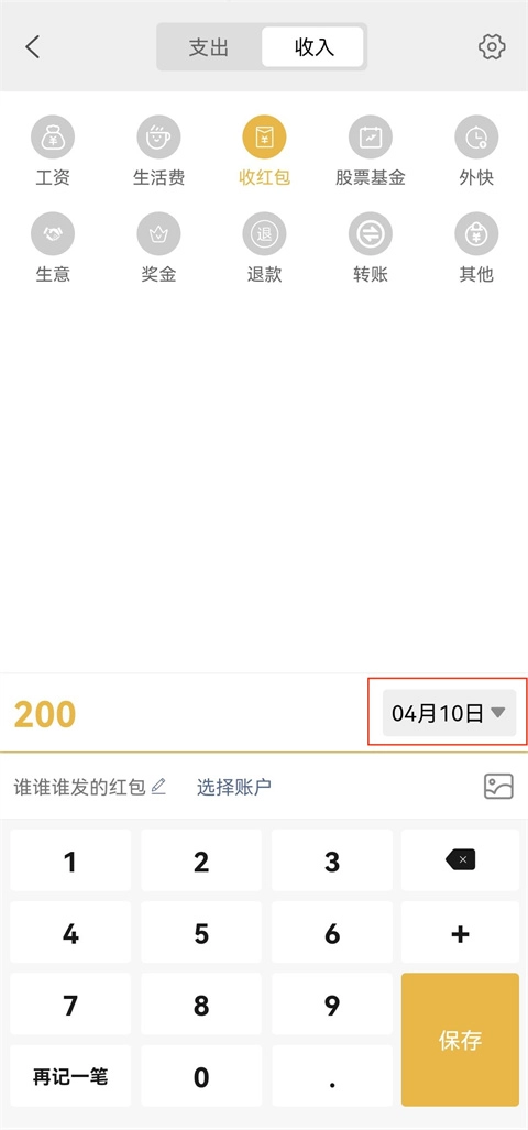 2、用户可以根据需求选择支出和收入;