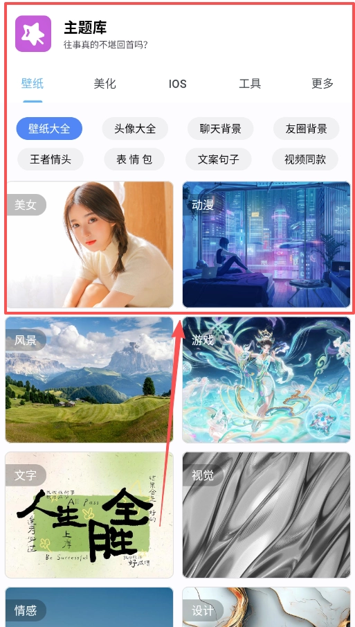 1、首次使用时,建议先从顶部菜单的“壁纸”或“美化”入口进入,浏览“壁纸大全”中的各类分类,点击图片即可直接完成应用操作。