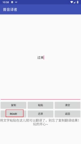 2、在软件里输入需要翻译的内容,接着点击页面下方的ROAR!