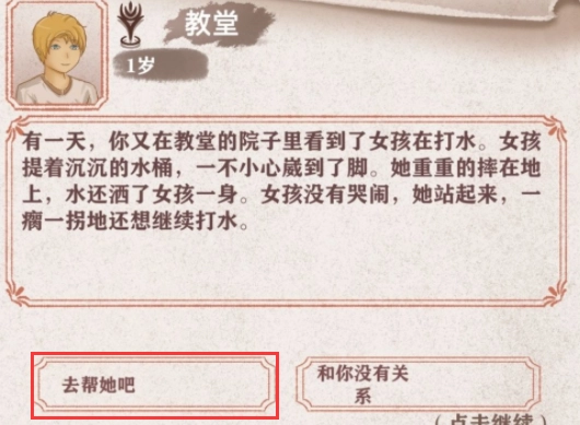 2、结识方式:去教堂帮她打水可开启0级好感度。