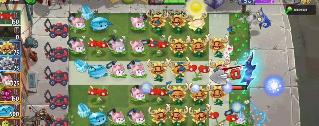 最后几批僵尸来临的时候,可以把前排中间的向日葵用铲子铲掉,种上仙人掌