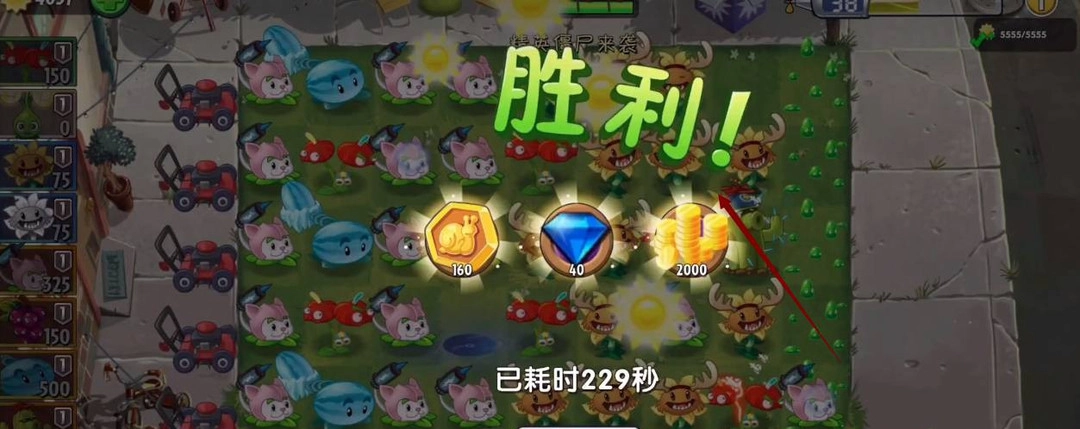 最后我们对前排的仙人掌使用能量豆,快速消灭最后一点僵尸