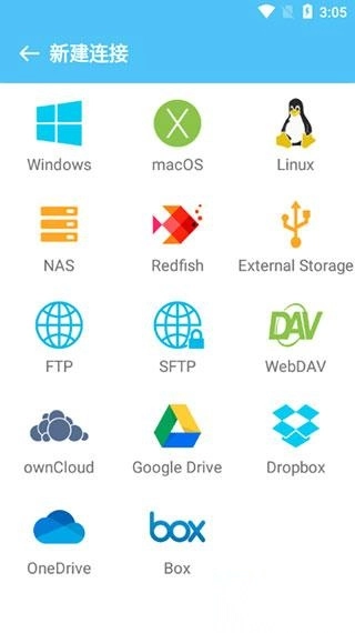 2、然后选择你想要连接的类型:Windows, macOS, NAS等;