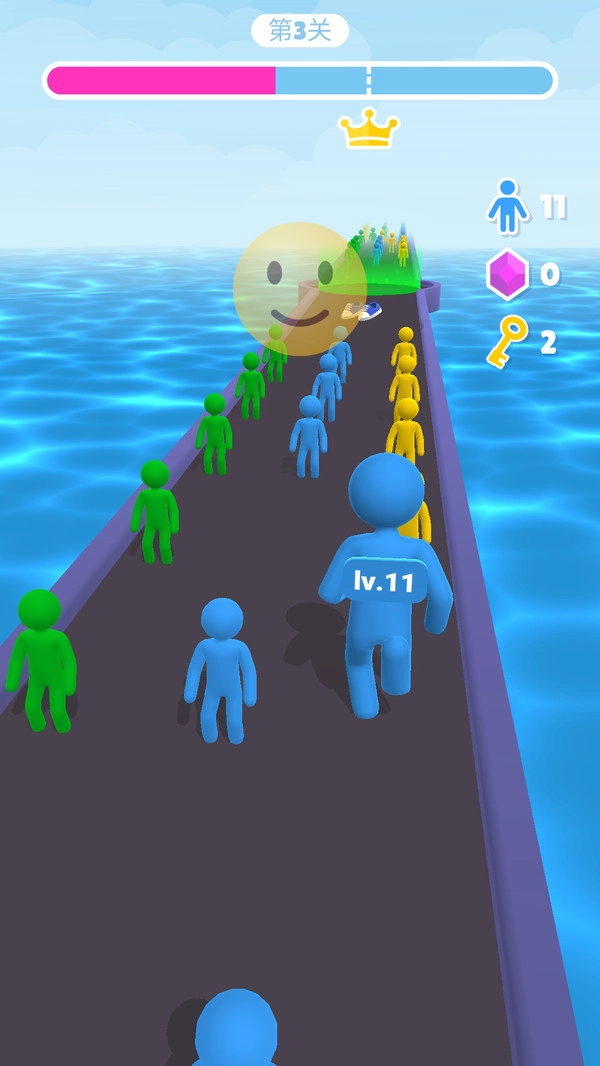 在这款趣味冒险跑酷游戏里,玩家将操控专属角色开启挑战。场景中散布着各色小人,只有收集与自身颜色一致的伙伴,才能让角色体型持续膨胀;若误触其他颜色的小人,身形则会不断缩小。目标是通过积累同色伙伴壮大自身,向着刷新终点成绩全力冲刺,喜欢的朋友别错过这场独特的跑酷之旅!