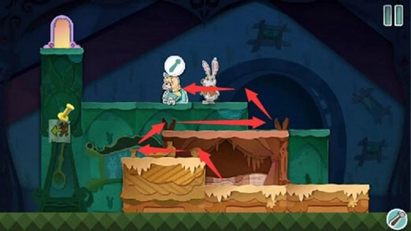 根据教学指引,把红色方块往左拖动,把兔子的图案拼接完整就能触发对话。