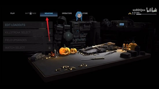 然后点击,如图所示位置,即可进入武器库。