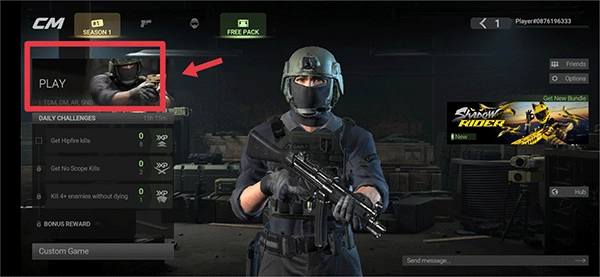 在游戏主界面中,点击paly开始匹配玩家
