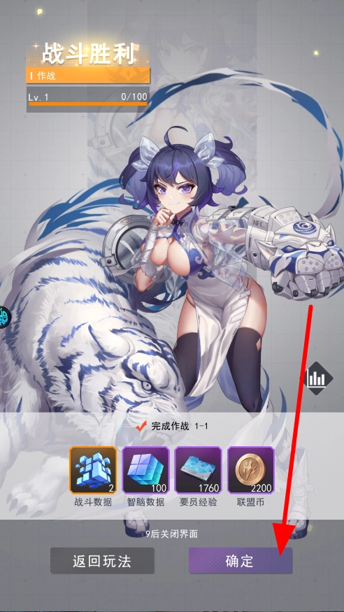 战斗胜利后,可获得战斗数据、智脑数据、要员经验、联盟币等奖励,点击确定按钮领取这些奖励,就能用于提升角色或解锁新内容等操作。