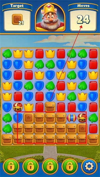相同颜色的方块能够用于破坏被锁住的箱子,不过要留意步数,一旦步数耗尽而箱子尚未清理完毕,挑战就会失败。