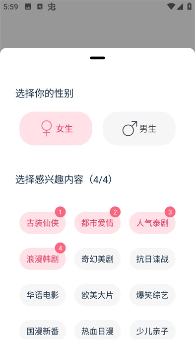 启动应用后,我们会进入其初始界面。在这个界面中,我们可以挑选心仪的标签,也可以直接跳过这一步,进入应用的主页面。