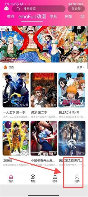 先在emoFun中找到想看的动漫