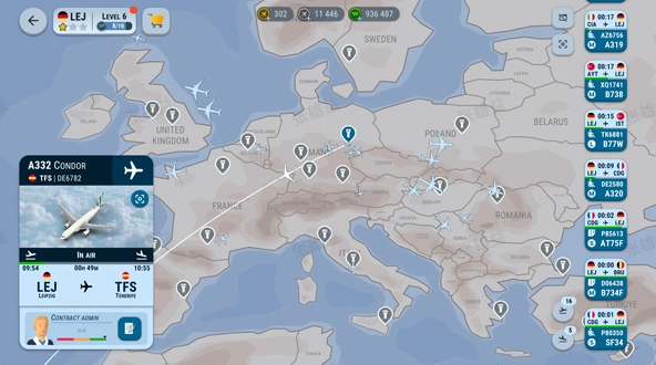 挑选已持有的飞机,规划航班任务,开启一段完整的飞行旅程。