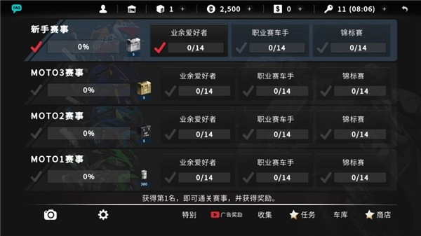 每种模式里都包含着各式各样不同的赛事与难度,要是能以第一名的成绩通关,就能得到丰厚的奖励。