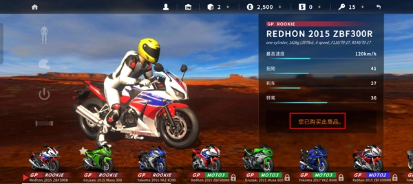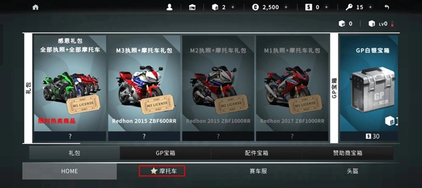 下方有多个选项可供挑选,点击选择摩托车,之后再购买其他摩托车就能完成换车操作了。